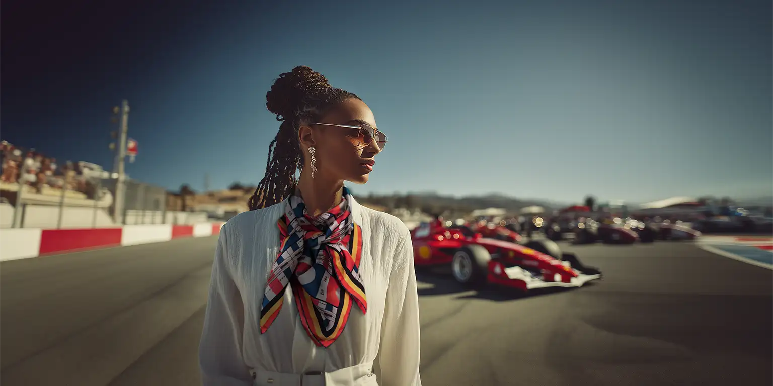 Over the years, friends and collectors kept saying my art would make great scarves. I never gave it a lot of thought as I focused on making artwork for walls. But it started to make sense. Why not enjoy the colors and patterns and cars and motorsports and all the things that I love about design and racing in another medium. Following are a few Art Scarves. All are classic 90x90 cm size Italian silk. All are exclusive, limited editions, for special events.