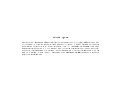 most out of his cars. His crew. His team. I shot pieces Ferrari Formula One engines in Maranello for a series of